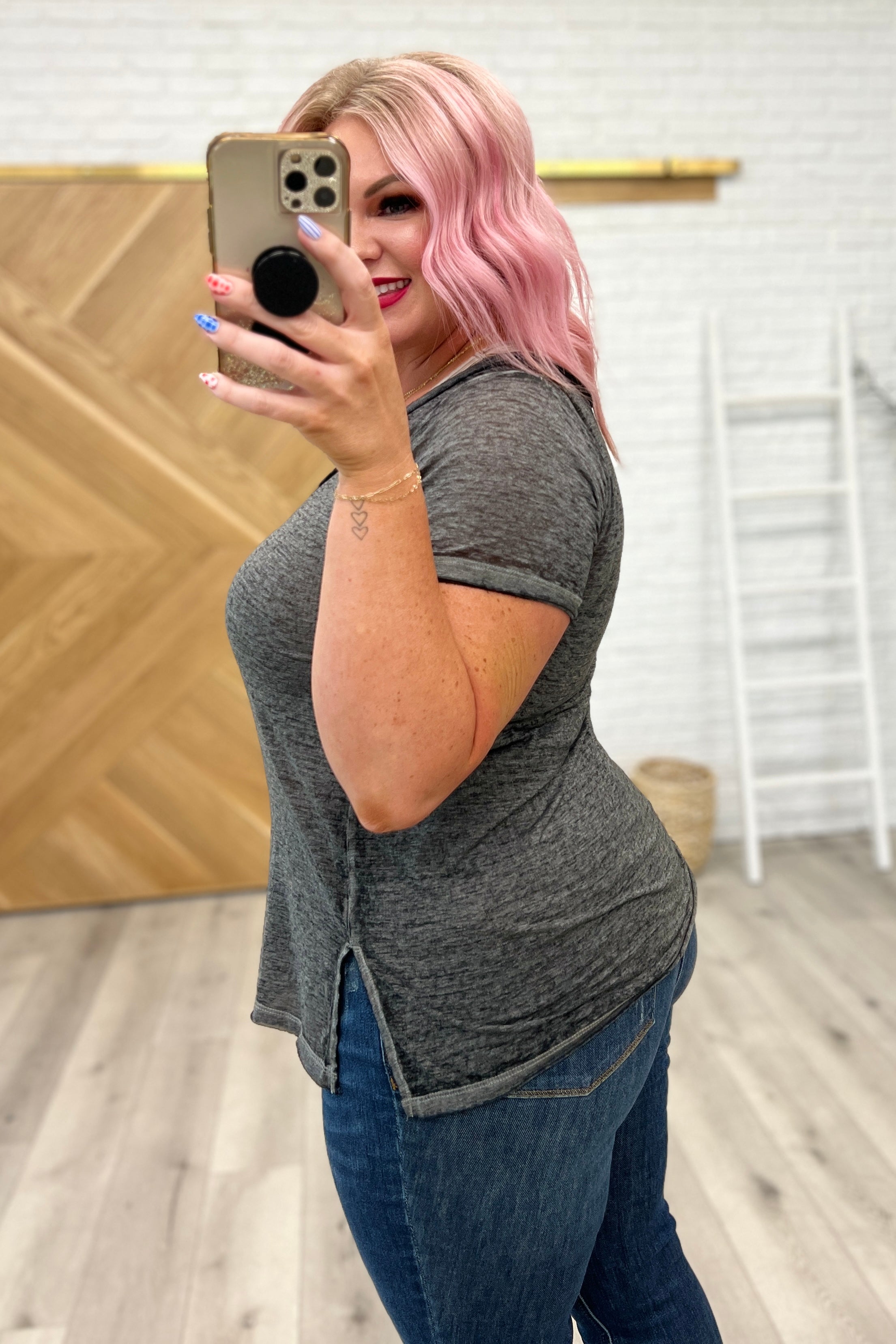 Melange Burnout V-Neck T-Shirt in Ash Black