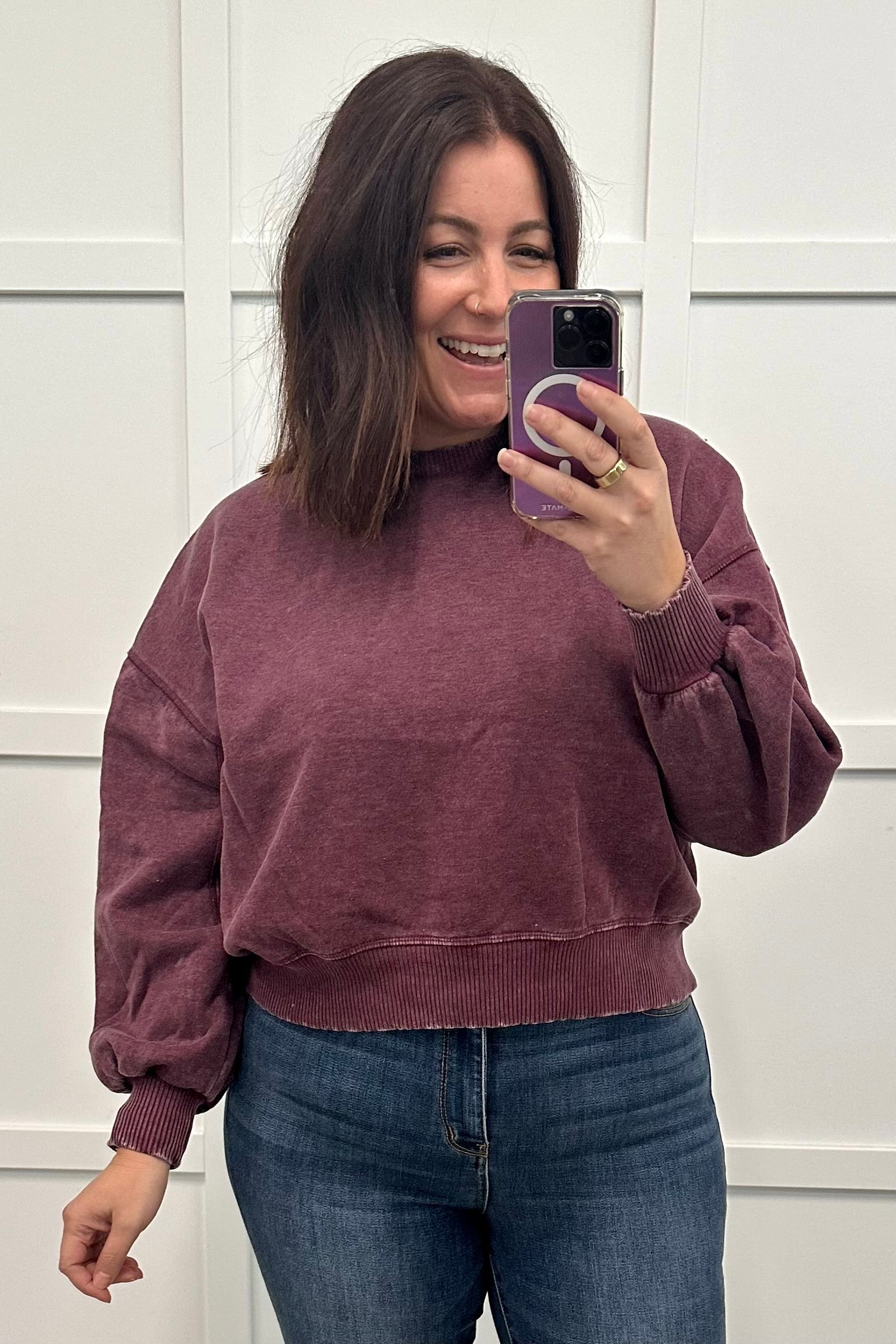 For classic comfort and laid-back style, this Acid Wash Oversized Pullover is a must-have. Crafted with a soft, mineral-washed fabric, this cropped length pullover features a loose fit, crew neckline, and a slightly worn-in finish. Perfect for any casual occasion.