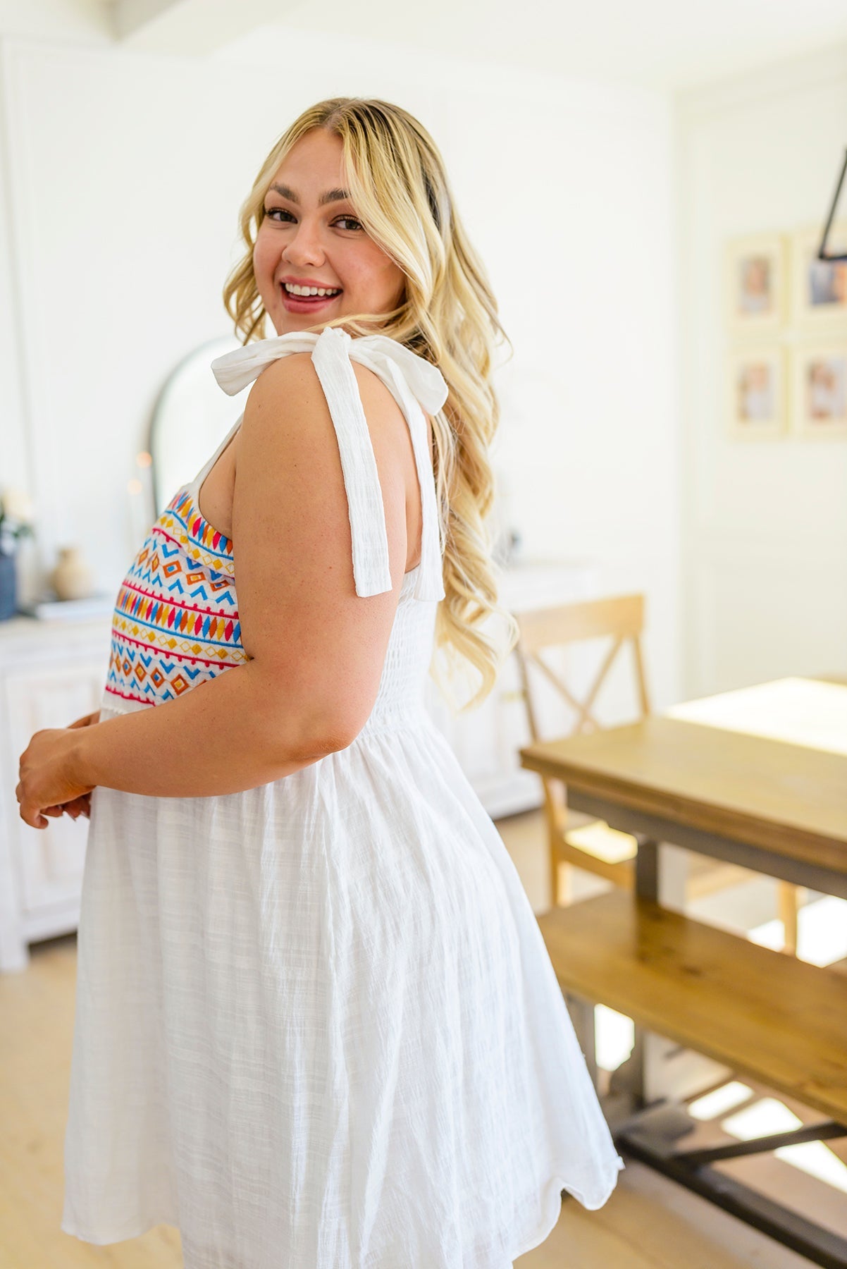 Ain’t She Sweet Embroidered Babydoll Dress is the perfect combination of feminine details and modern style! With a babydoll silhouette, tie detail straps, and smocked back bodice, it’s the perfect balance of comfort and style. The textured woven fabric and fully lined structure mean you can rock this look with confidence and ease. So, who’s ready to make an entrance?