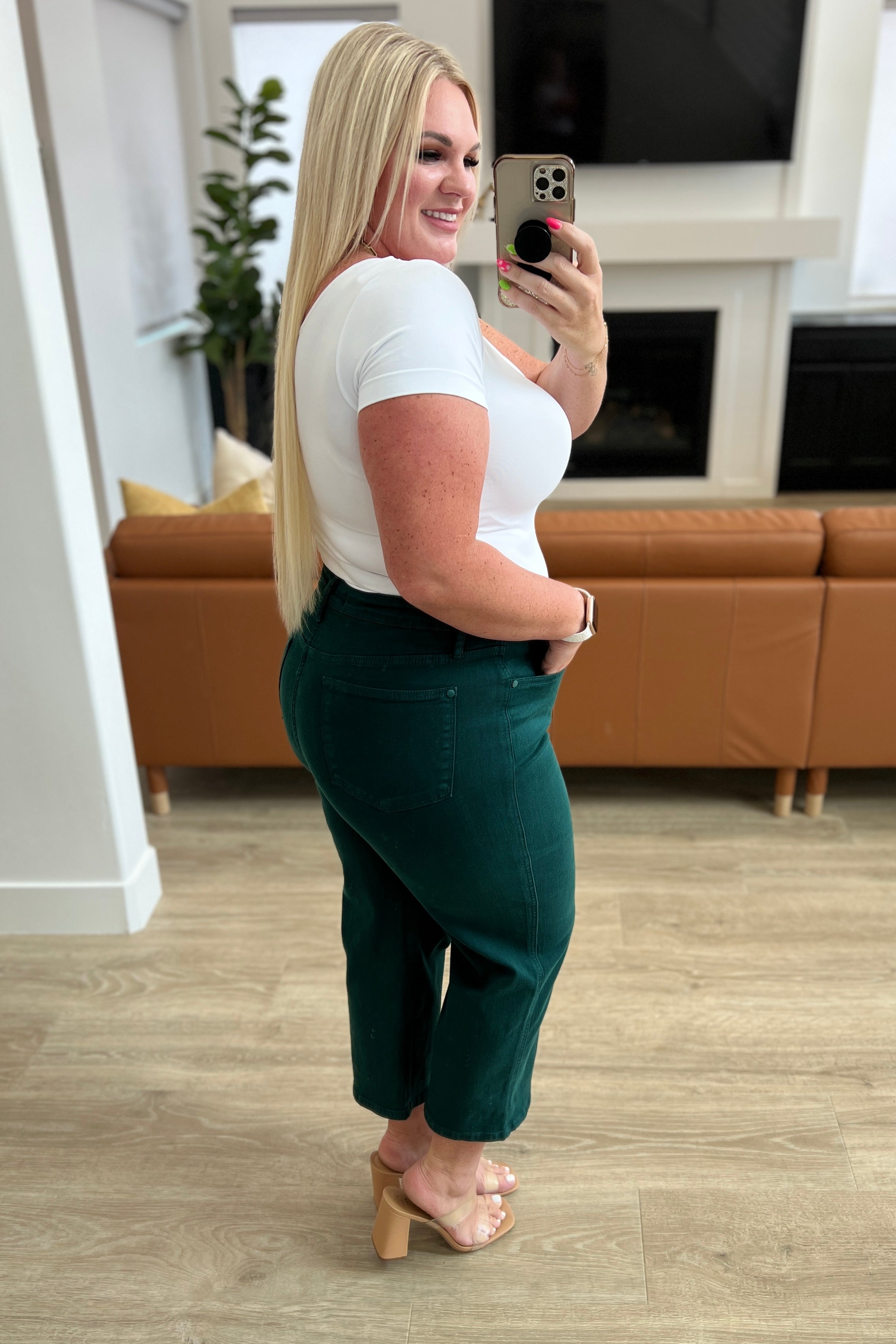 Discover your new favorite jeans with Briar’s High Rise Control Top Wide Leg Crop Jeans from Judy Blue. Our triple threat of design, fit, and color come together for maximum style, comfort, and chicness. Features include high rise, tummy control tech, and a wide leg crop in a luxuriously rich garment-dyed teal. Complete with coordinating hardware and you’re ready to look and feel amazing!