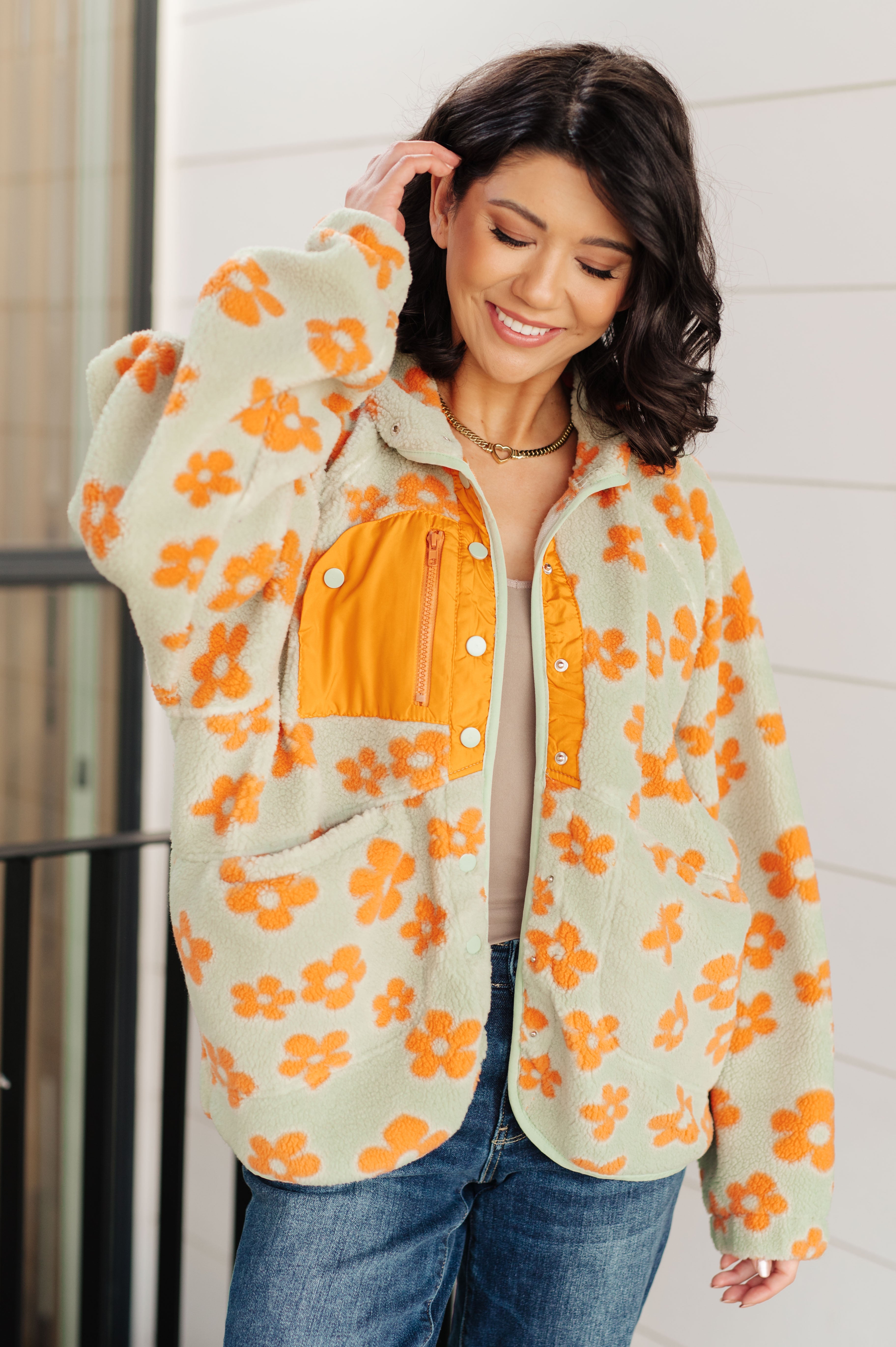 Cozy up in style with our Love It Don’t Leave It Floral Fleece Jacket! Made with sherpa fleece for ultimate softness, this jacket features a playful floral print and convenient snap and zip pockets. Perfect for those chilly days when you want to stay cozy and cute.