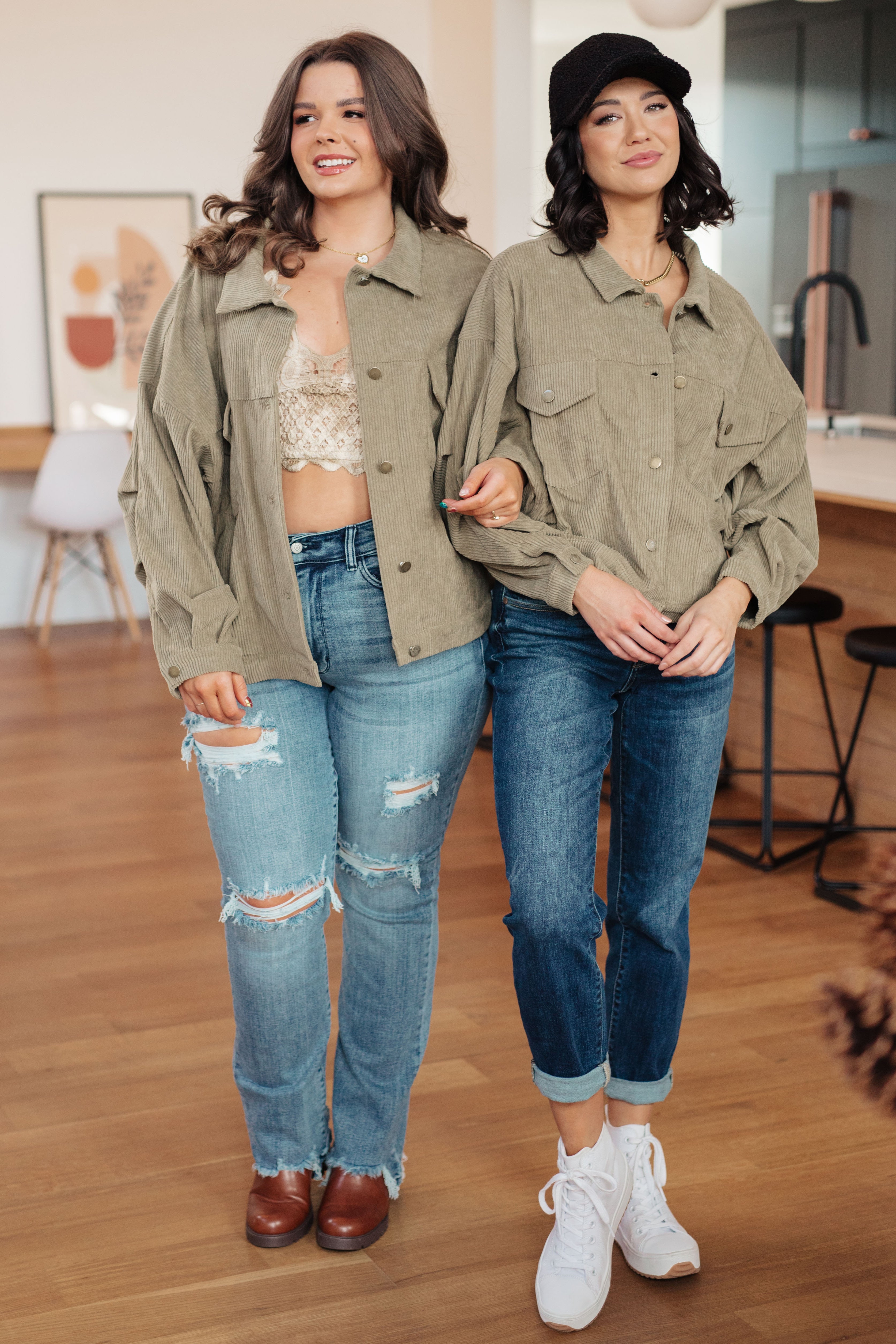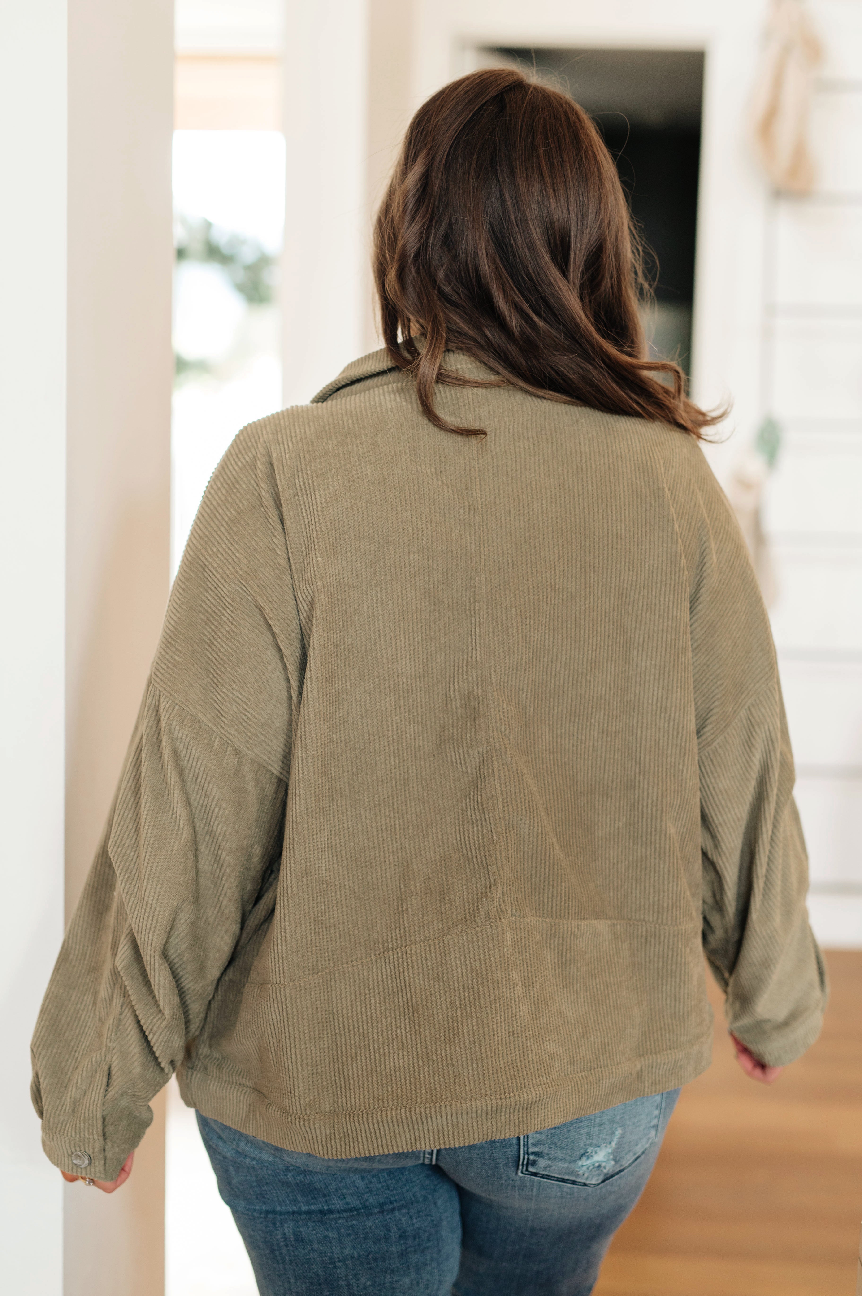 We are spending the rest of our days obsessing over the Primrose Corduroy Jacket. Composed of classic corduroy, shaping a collared neckline and long sleeves with button cuffs. The slightly oversized bodice has a functional button placket down the center with pleated sleeve detailing.
