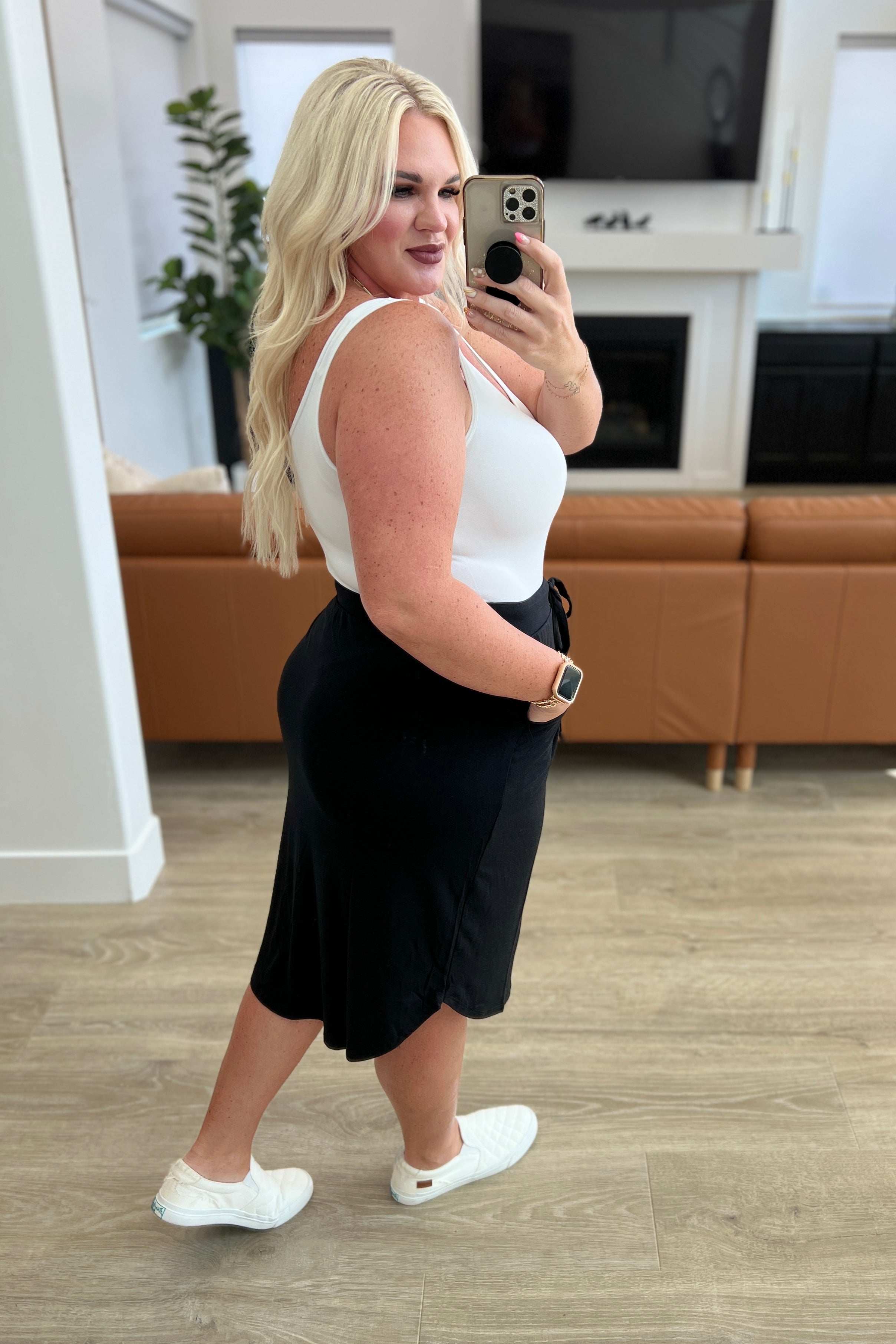 This figure-flattering Self-Tie Tulip Hem Skirt is perfect for any occasion. Crafted from breathable jersey knit material, this skirt features an elastic waistband and functional drawstring for a comfortable, secure fit. The tulip hem adds a stylish touch to complete this versatile piece.