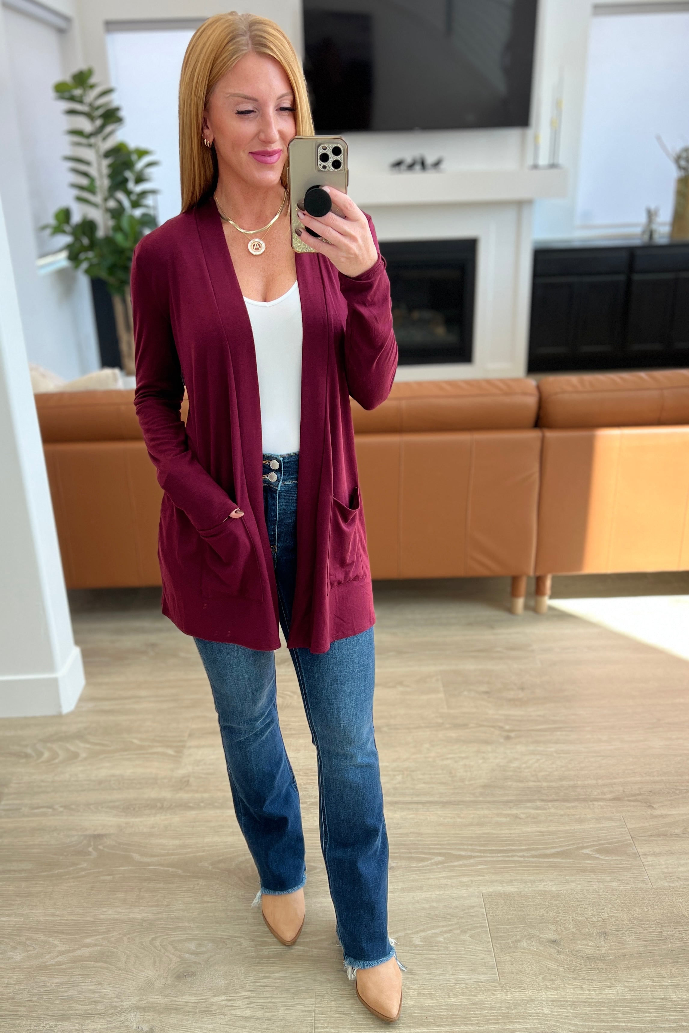 This Slouchy Pocket Open Cardigan offers a lightweight jersey knit fabric that provides a slouchy fit and an open front. Two front pockets make it a great choice for relaxed days out. Layer with jeans, a skirt, or leggings for a comfortable, stylish ensemble.