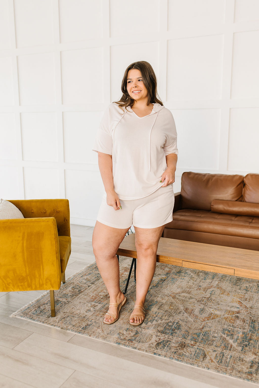 Feel comfortable in the Stay Awhile Hoodie and Shorts Set! Enjoy the cozy French Terry in the short sleeve hoodie, plus the matching shorts that have an elastic waistband and pockets. Get ready to lounge in style and comfort in this perfect everyday athleisure set!