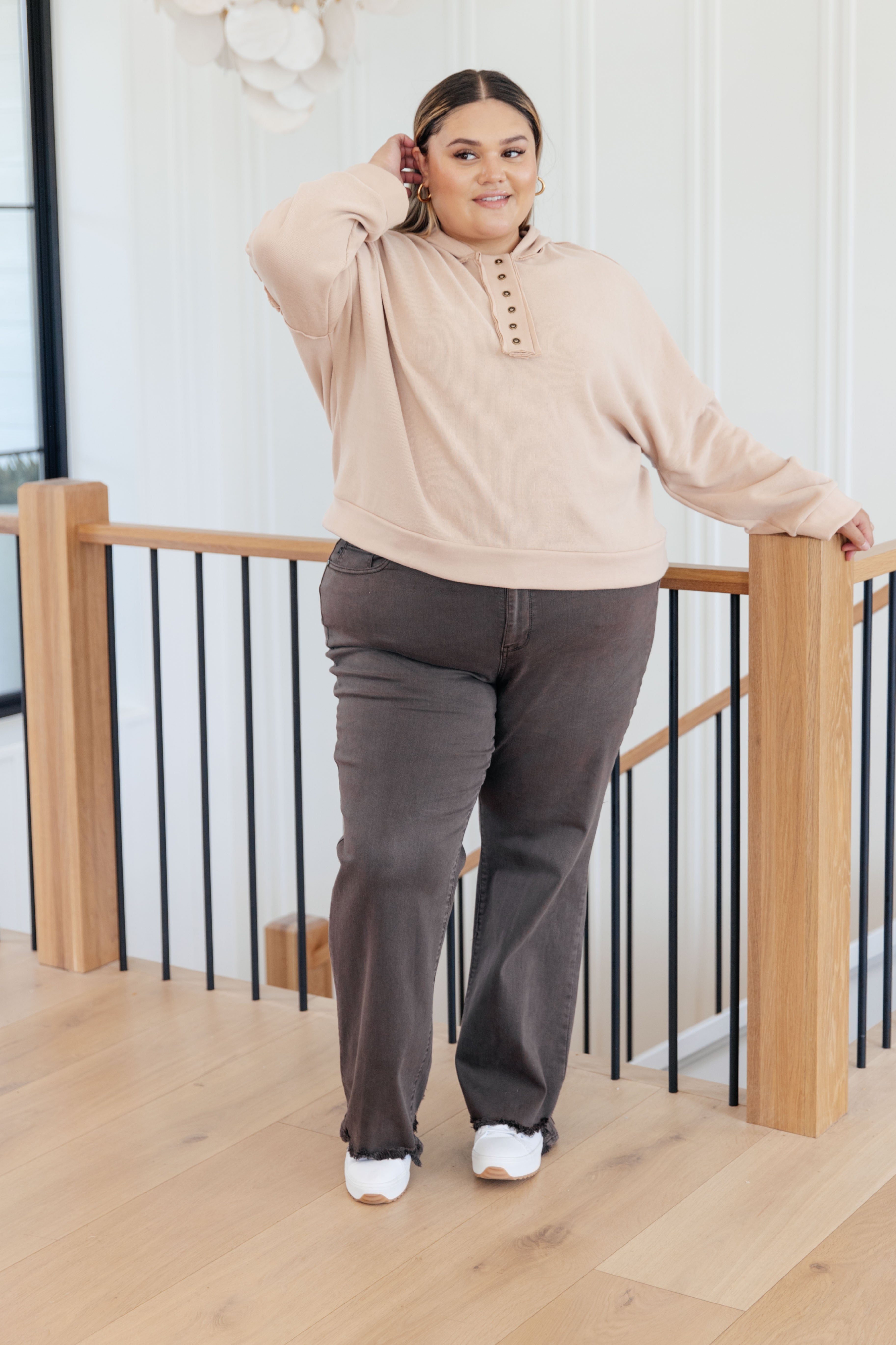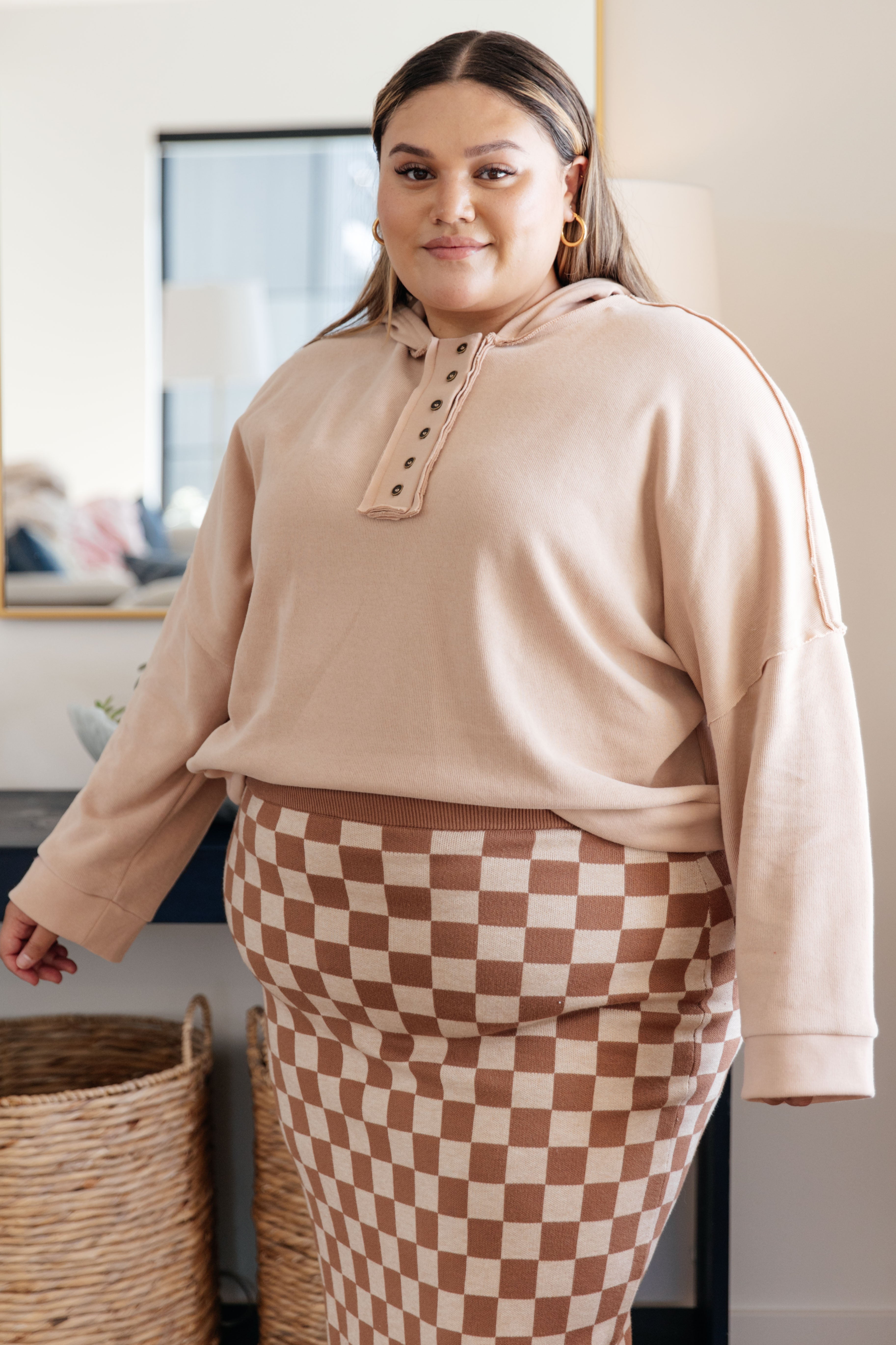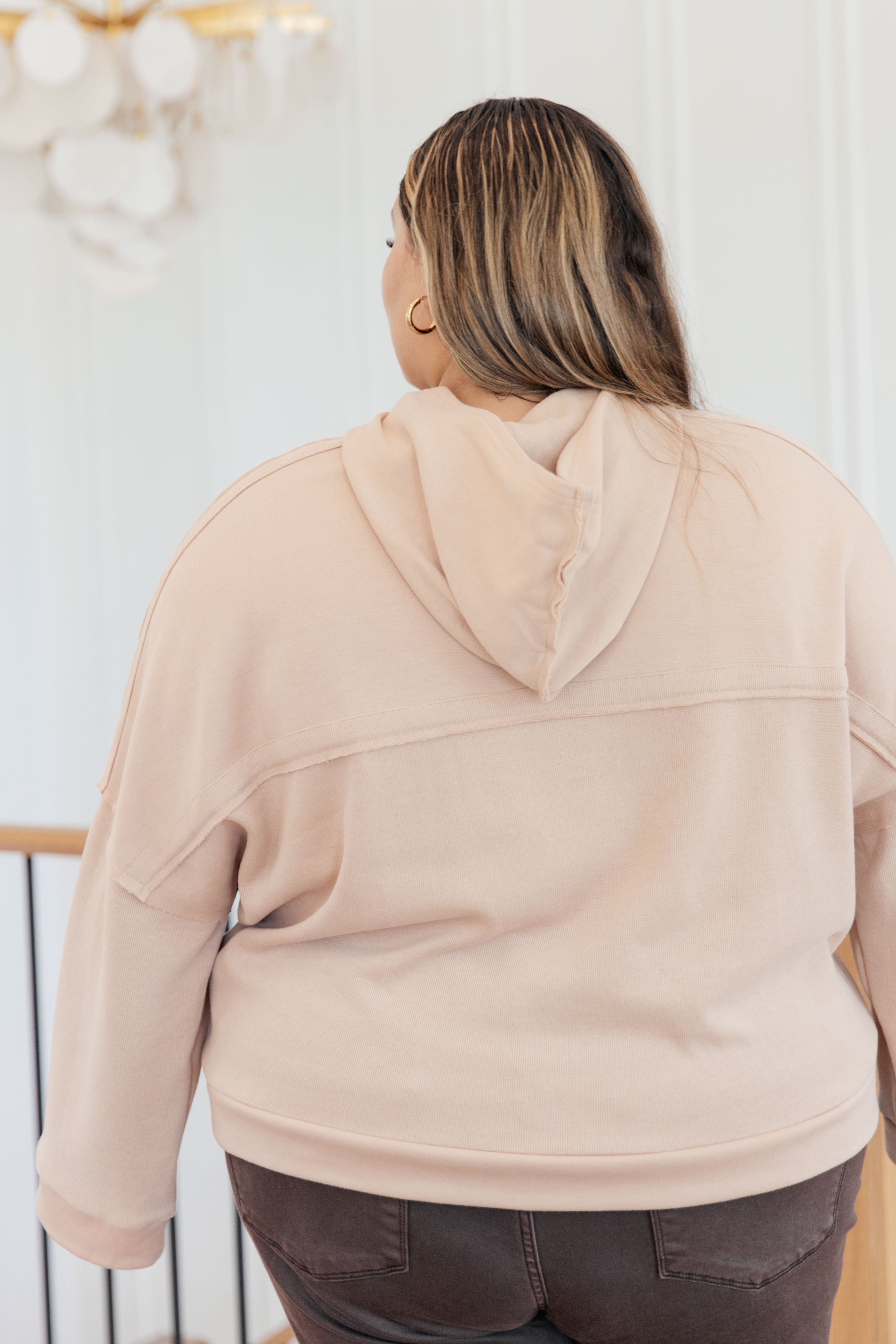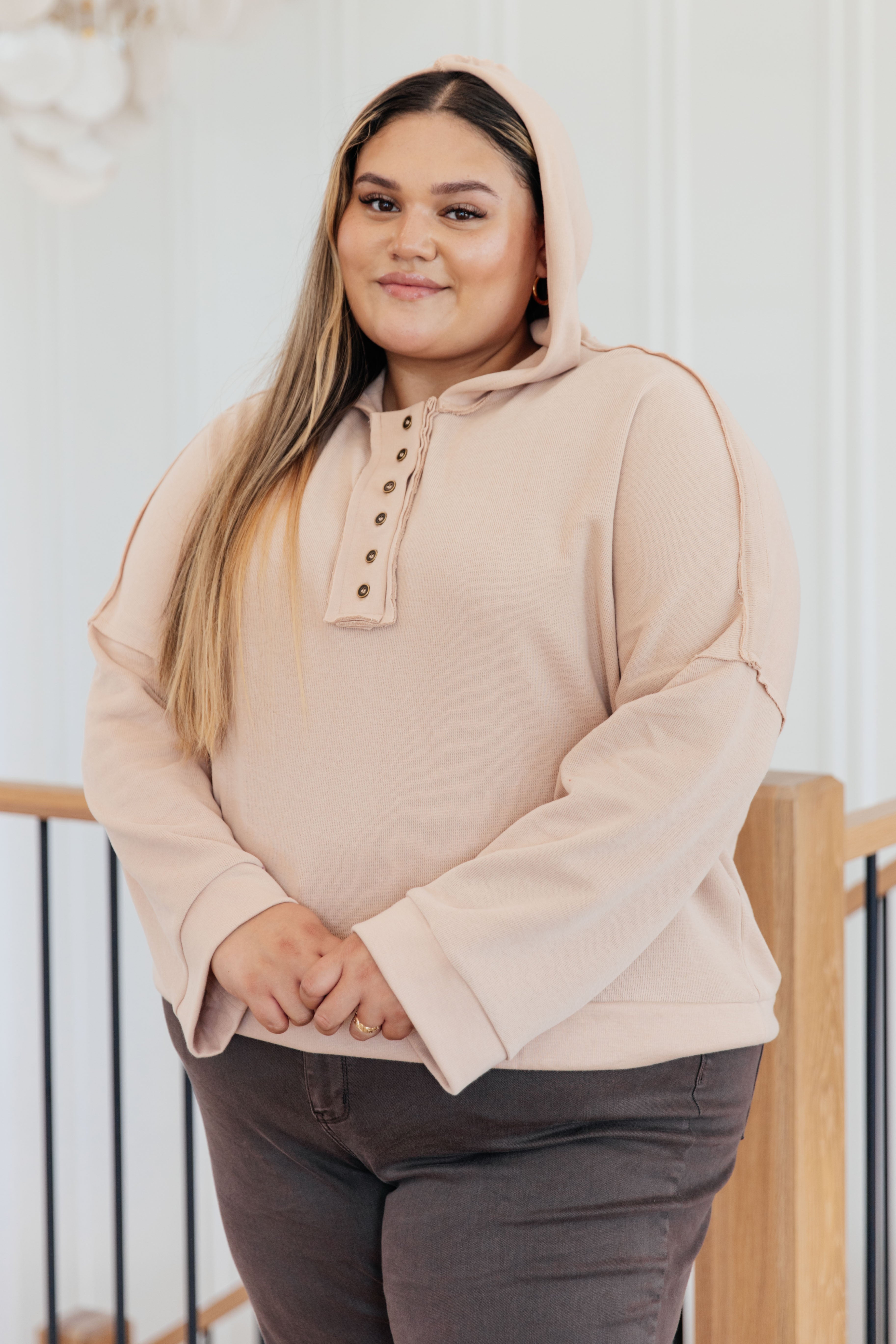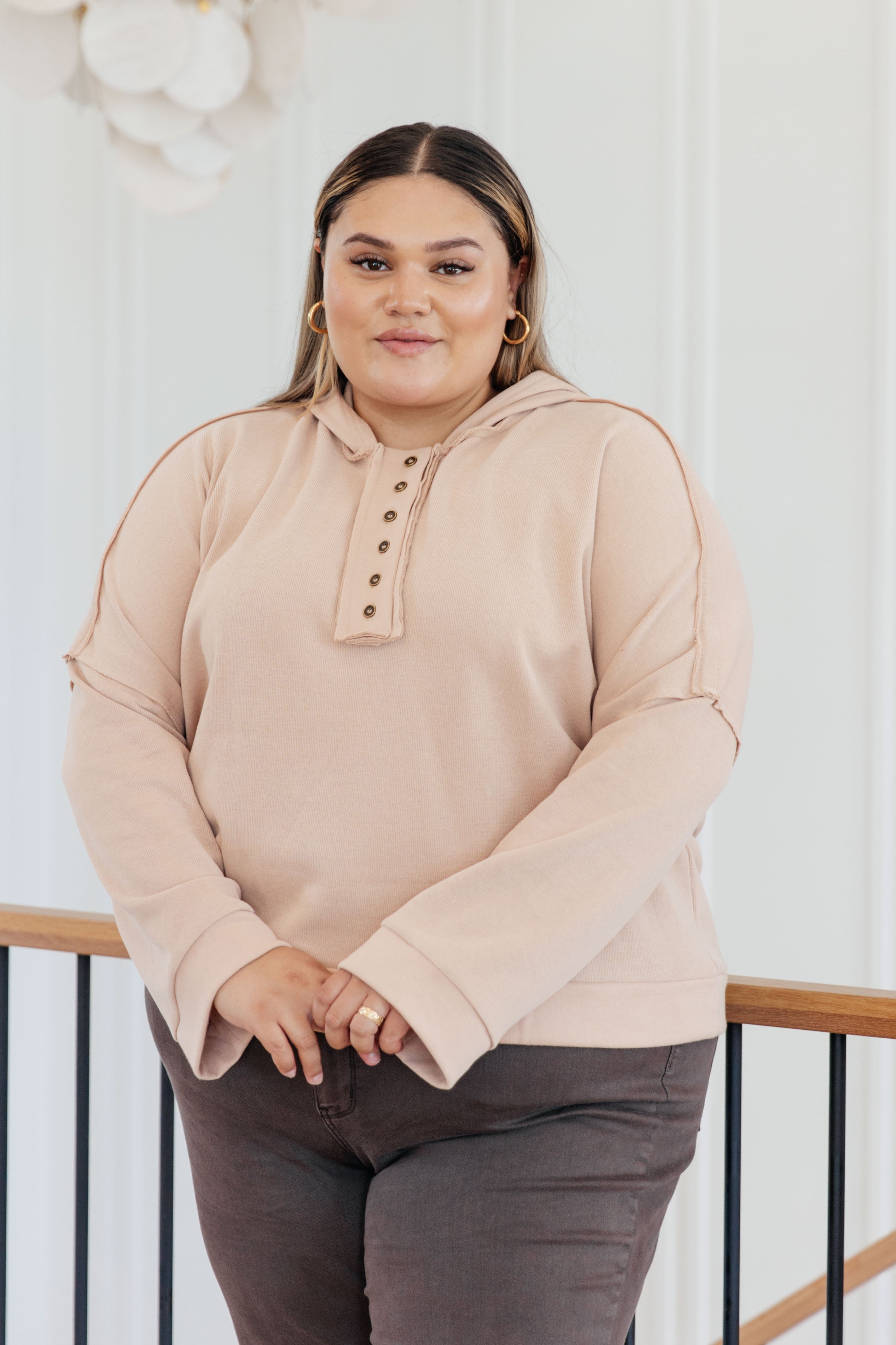 Stay cozy and stylish in the Throwback Heartthrob Hoodie in Beige. This button-up layer features a generous hood, exposed seams, and cuffed edges to keep you in comfort and style. Perfect for layering and keeping warm, you’ll love the look and feel of this throwback layer!